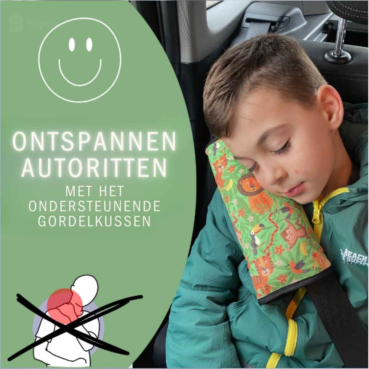 Ideaal voor een autovakantie met kinderen of lange ritten naar familie, camping of vakantiepark. Dankzij de zachte vulling en comfortabele stof kan je kind ontspannen slapen zonder nekklachten.