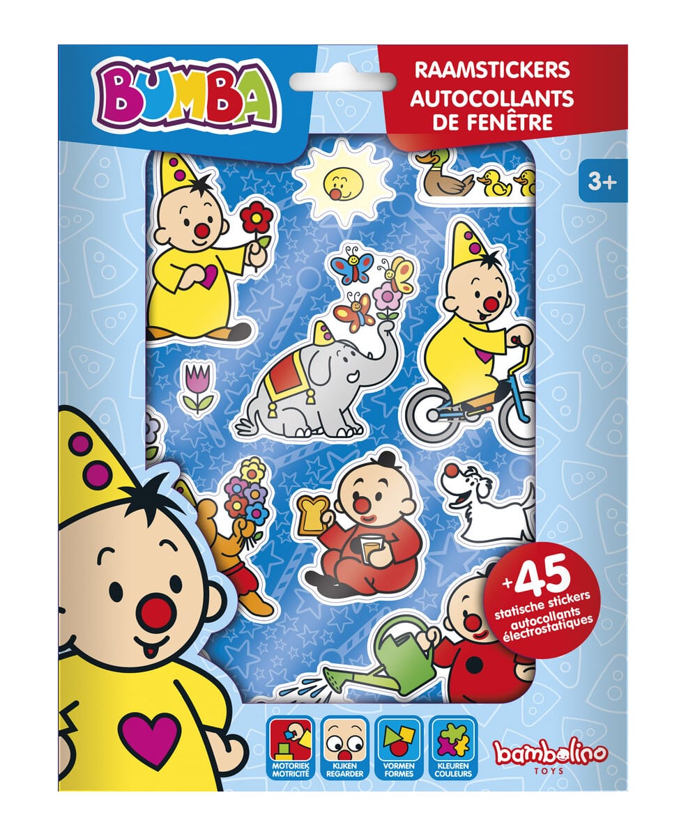 Met de vrolijke raamstickers van Bumba kunnen kinderen zich keer op keer vermaken. Deze raamstickers zijn geschikt voor op autoruiten, thuis op ramen, tegels of spiegels en je kunt met de meegeleverde achtergrond je eigen avonturen verzinnen. Omdat de stickers zonder lijm werken, kun je ze telkens opnieuw gebruiken op een gladde ondergrond, zelfs op het raam van een vliegtuig tijdens een lange vlucht.