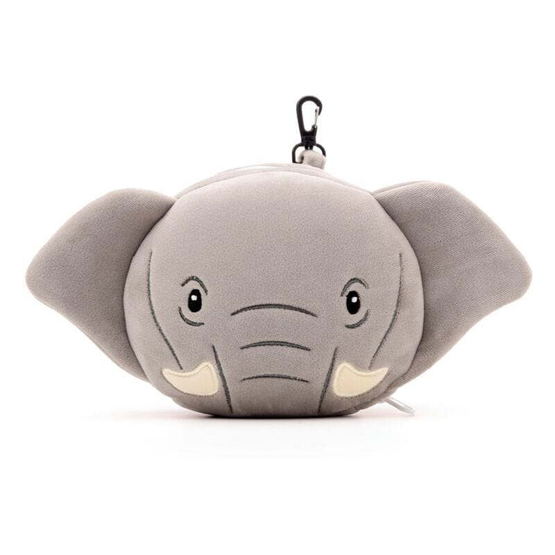 Dit vrolijke olifant reiskussen met slaapmasker voor je kind is ontworpen voor comfort onderweg. Het zachte pluche tasje met rits vouw je open tot een kussen met geïntegreerd slaapmasker. Dankzij het haakje hang je het kussen eenvoudig aan een rugzak of koffer, ideaal voor op reis.
